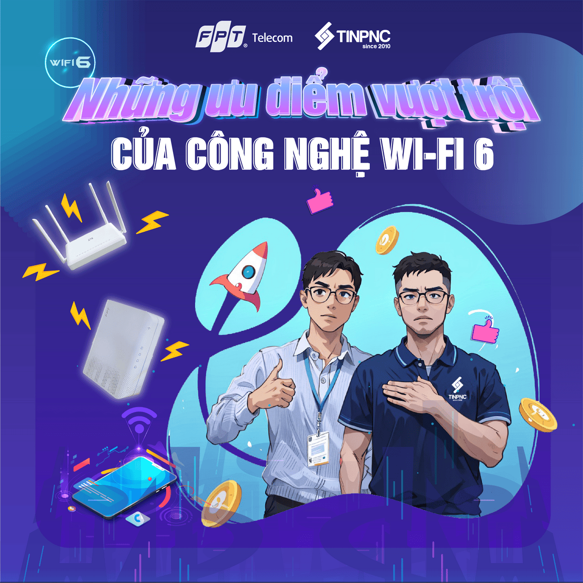 FPT sử dụng thiết bị hiện đại, an toàn tuyệt đối với khả năng chống sét hiệu quả, bảo vệ thiết bị trong mọi điều kiện thời tiết. Hỗ trợ các công nghệ kết nối tiên tiến như WiFi 5 và WiFi 6, mang đến trải nghiệm mạng nhanh, mạnh và ổn định hơn bao giờ hết.